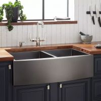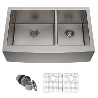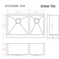 Armor-Tec AP3320ABL 33 Inch Handcrafted Square Double Bowl 60/40 16 Gauge Stainless Steel Farmhouse Apron Kitchen Sink