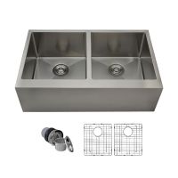 AP3320A 33 Inch Handcrafted Square Double Bowl 16 Gauge Stainless Steel Farmhouse Apron Kitchen Sink