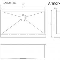 Armor-Tec AP3320C 33 Inch Farmhouse Apron Handcrafted Undermount Square Single Bowl 16 Gauge Stainless Steel Kitchen Sink