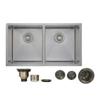 3218A-R10 32'' x 18'' Handcrafted Undermount Square Double Bowl Kitchen Sink